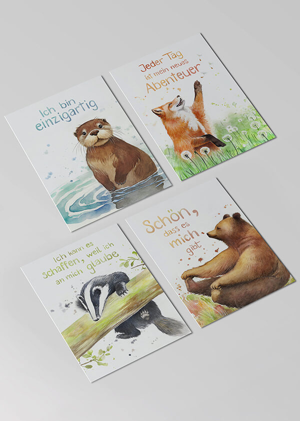 „Wir bedanken uns sehr für die gute und professionelle Zusammenarbeit. Es hat große Freude gemacht, mit Ihnen an der Umsetzung unserer Affirmationskarten für Kinder und Jugendliche zu arbeiten. All unsere Ideen wurden umgehend und mit viel Liebe zum Detail künstlerisch umgesetzt. Das Endergebnis hat unsere Erwartungen weit übertroffen: Ihre Illustrationen sind entzückend gelungen, und die Motive auf den Affirmationskarten drücken genau das aus, was wir jungen Menschen mit auf den Weg geben möchten. Vielen Dank dafür.“