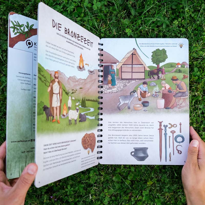The first finds of settlements in today’s municipal area go back to the Bronze Age. In the individual chapters of the book, the milestones in history are dealt with in a way that is suitable for children. The illustrations are of course particularly important in a children’s history book for comprehensibility. I paid special attention to natural colors and cheerful figures.