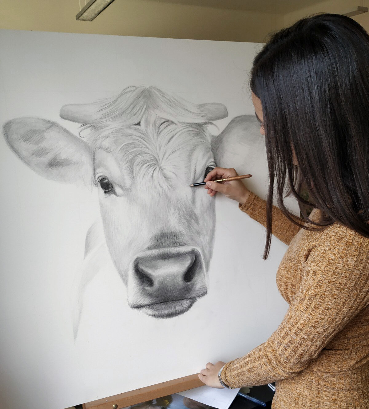 If you are interested in the drawing process of a 90cm x 90cm big cow drawing you can watch this timelapse video on my Instagram profile.