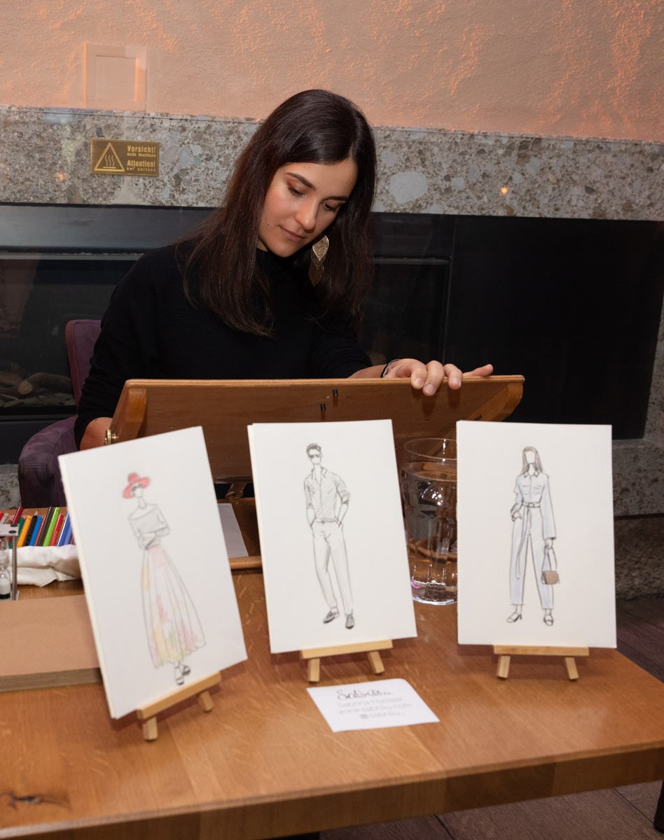 Live-Zeichnen von Fashion-Portraits bei der Hochzeit von E&S, Zeit pro Portrait ca. 4 Minuten (©Photo by Surfin Birds)