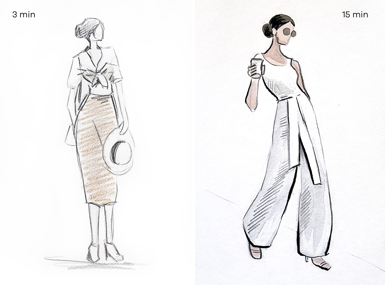 Schnelle Fashion-Sketches, Zeit pro Person ca. 3 Minuten