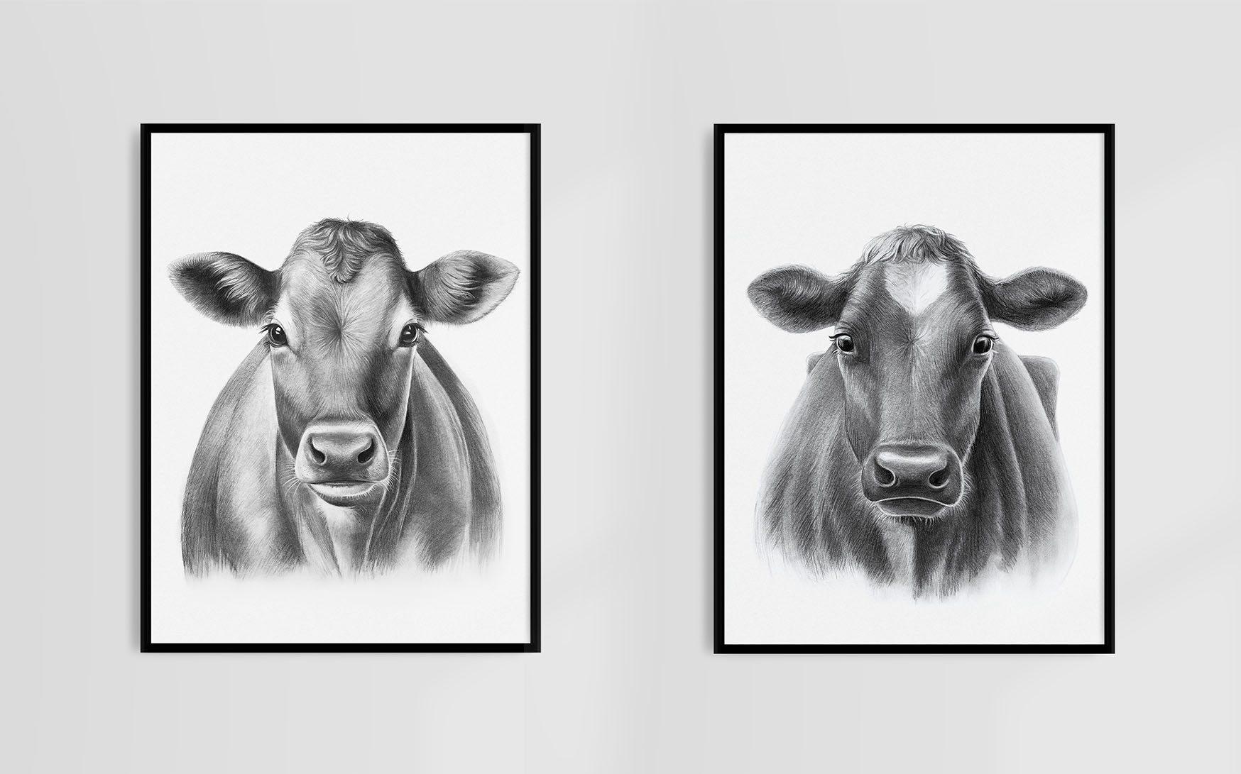 Original Bleistiftzeichnungen Kühe, Cow Drawings | Sabrina Hassler | Sabrillu