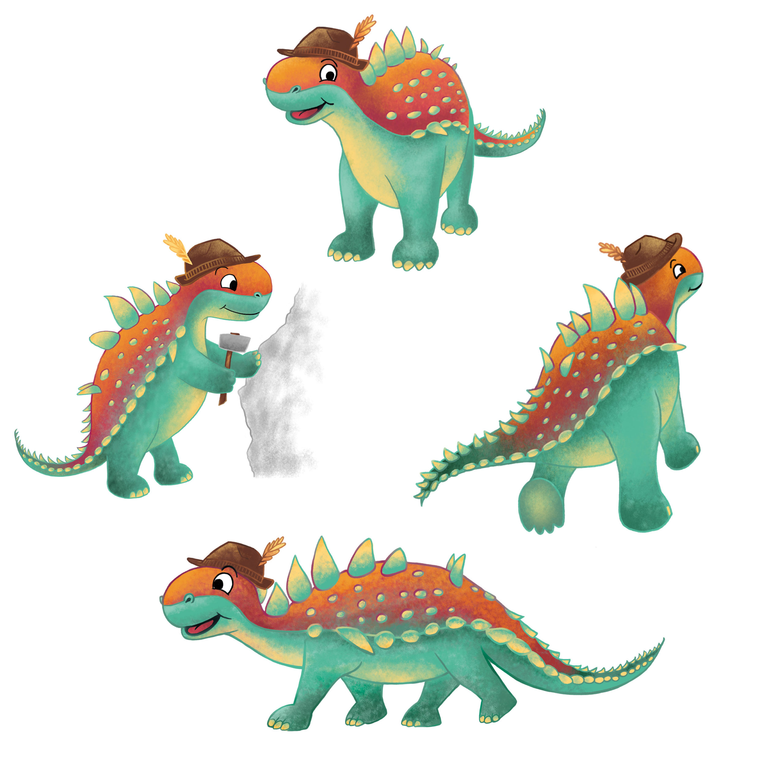 Der Dinosaurier „Struzi“ dagegen ist rein digital gezeichnet. Diese digitale Herangehensweise ermöglicht mir eine noch größere Flexibilität bei der Darstellung verschiedener Posen.