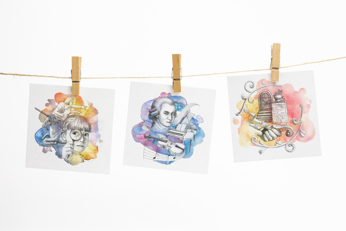 Kinder und Jugendliche, Musikstadt Salzburg & Mittelalter und Handwerk, Illustrationen Sabrillu