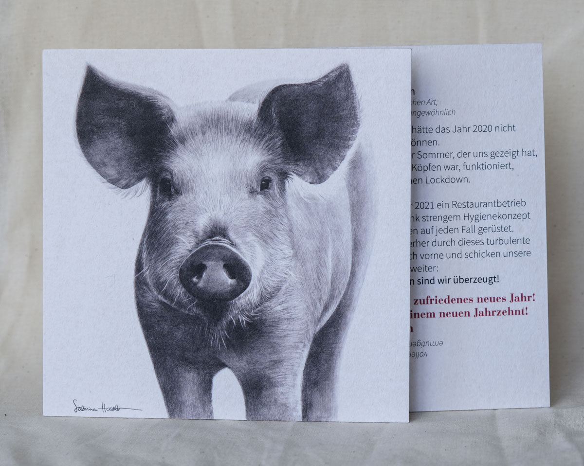 Meine Zeichnung schmückte außerdem die Neujahrs-Grußkarten vom Hotel zumOXN