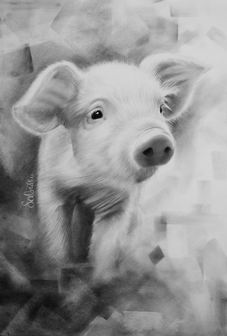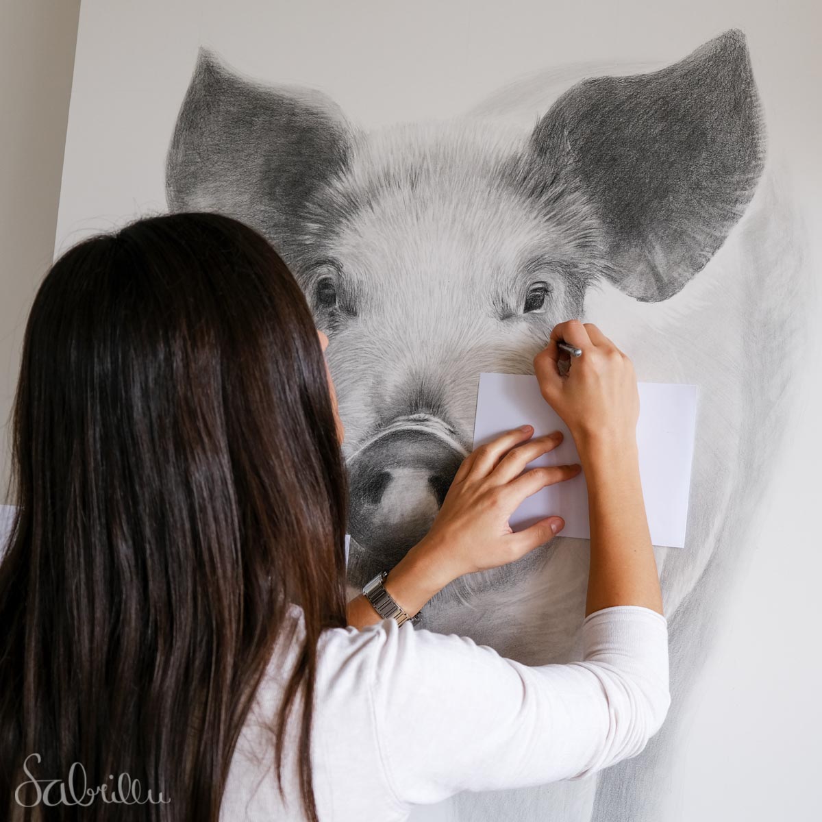 Zeichnung Entstehung, Graphit auf Papier, Schwein